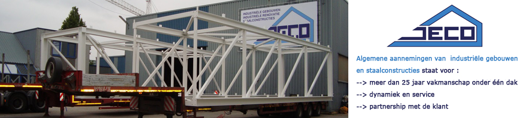Jeco NV werd opgericht in 1988 en is sindsdien als familiebedrijf actief als totaal aanbieder van industriële gebouwen. Zij treedt hierin op als hoofdaannemer of onderaannemer. De laatste jaren is Jeco zich naast de montage van staalconstructies voor nieuwbouwprojecten tevens gaan richten op industriële renovaties en op het plaatsten van industriële bekledingen voor dak en gevel.